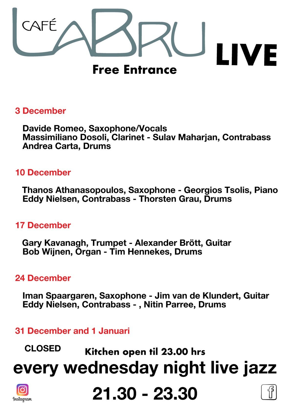 Every wednesday Live Jazz from 21.30 - 23.30